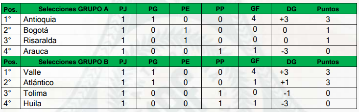 El primer tiempo, estuvo con inclinación constante de la cancha para Antioquia, pero la efectividad no estuvo a favor de los nuestros, situación contraria pasaría en la etapa complementaria. Iniciaba el complemento y nuevamente la iniciativa era de los antioqueños que con dos opciones de gol claras en los primeros 10´minutos de la final, insistían en aumentar el marcado. “La tercera es la vencida”… minuto 12´del segundo tiempo y luego de una excelente ejecución de tiro de esquina, por parte de Santiago Londoño, Jordy de Diego apareció en el segundo palo del arco Araucano y puso el 2-0 parcial. Se venía abajo la selección de Arauca. Pasaron 4´minutos para que llegara el tercero antioqueño por parte de Adrián Mosquera, que acababa de ingresar al terreno de juego. Control del juego por parte de Antioquia y al minuto 31´ llegaría el cuarto, anotación realizada por Andrés Monsalve, otra alternativa que entraba a la cancha y aportaba en el juego y en el marcador. No se iba a cerrar el partido de esa manera, por la falta de comunicación de los defensas centrales y el guardameta antioqueño, finalizando el compromiso, le dio el descuento a Arauca. 4-1 el resultado final y liderato parcial de Antioquia en el grupo A de la Fase Final del Torneo Nacional Sub-13 de hombres.