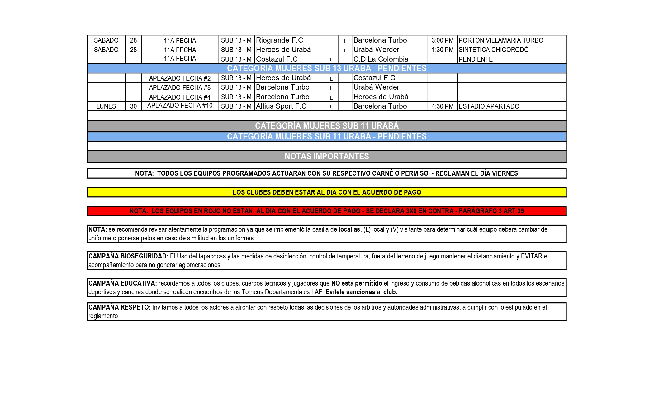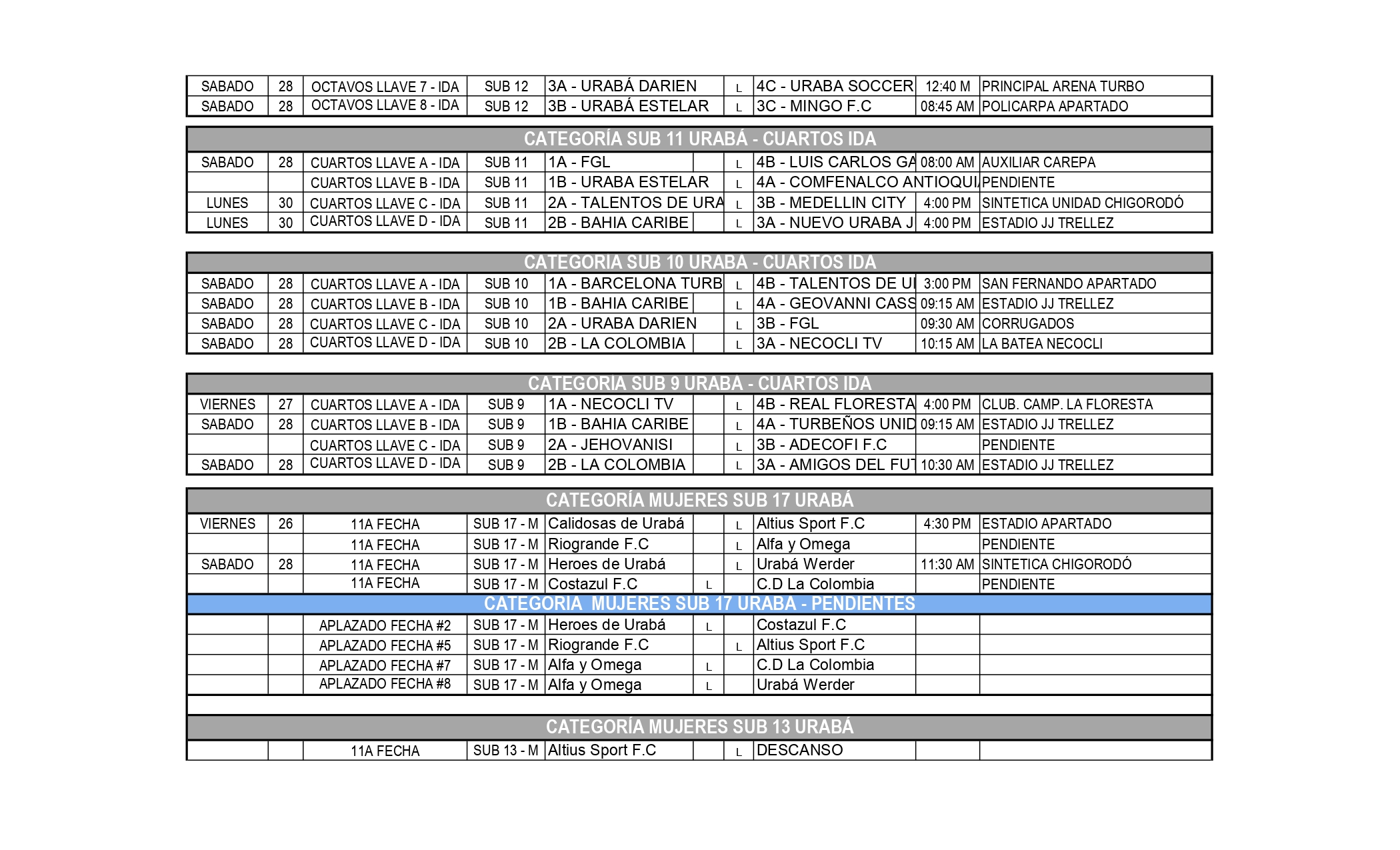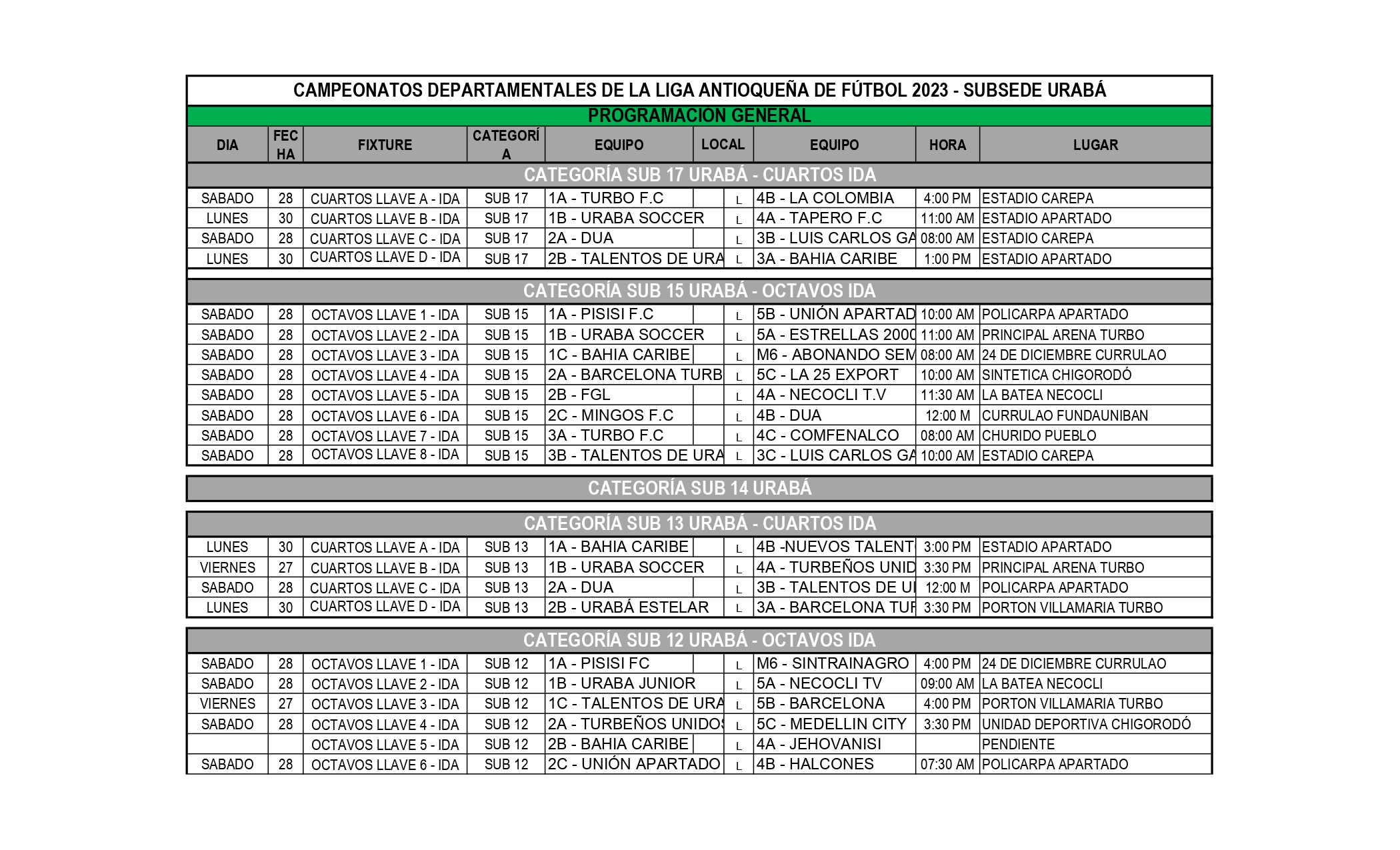 PROGRAMACIÓN TORNEOS URABÁ